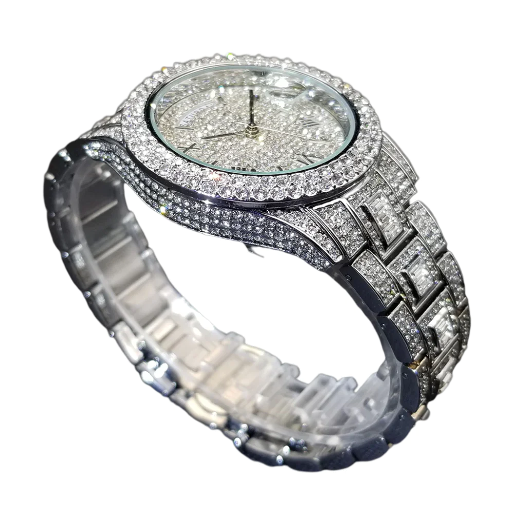 Indeed, iced out watches are renowned for their ability to elevate the overall aesthetic of both men's and women's attire. The term "iced out" aptly describes timepieces embellished with diamonds or other precious stones, strategically placed on the dial, bezel, or bracelet. These watches are crafted to command attention and exude refinement.
