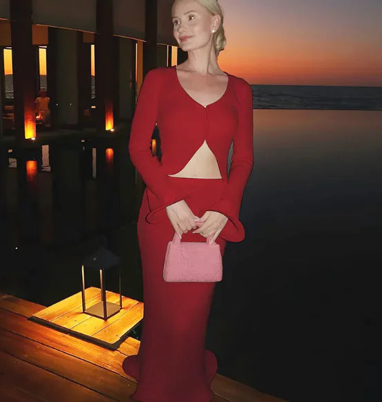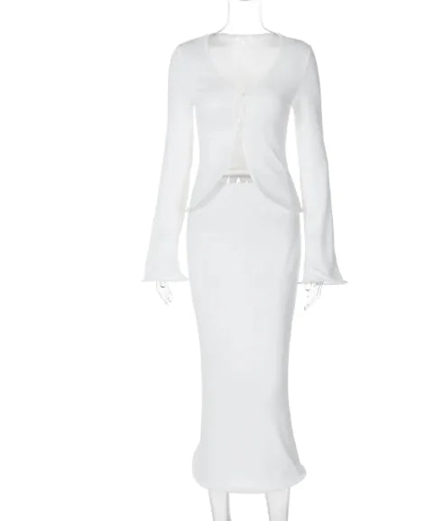 Upgrade your wardrobe with this sophisticated two-piece outfit, featuring a slim-fit long sleeve cardigan top and a bud-side package hip skirt for a flattering silhouette. Perfect for office wear, casual outings, or evening events, this stylish set offers both comfort and elegance. Pair it with your favorite heels or boots for a chic and polished look.