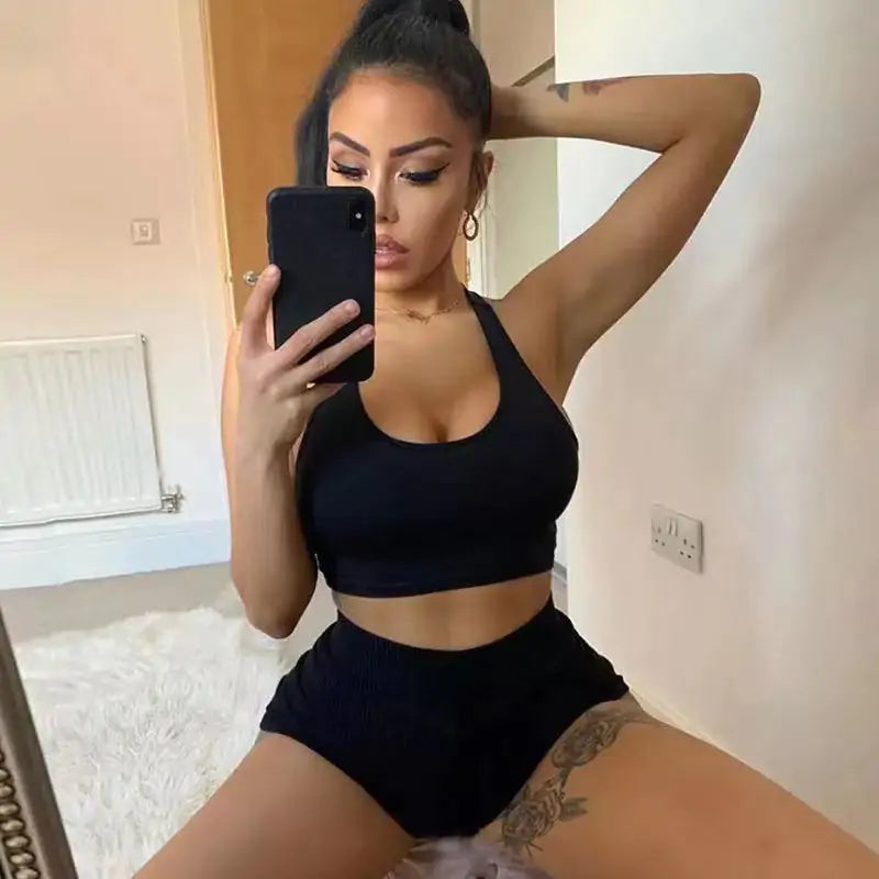 Key Features:- Crafted from high stretch fabric for maximum comfort and freedom of movement- Crop top and short leggings combination for a trendy and practical workout outfit- Available in a variety of solid colors to suit your personal style- Flattering and form-fitting design that accentuates your curves