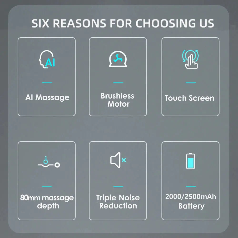 Equipped with an intuitive LCD display, our massage gun puts you in control of your therapy session. Easily adjust settings such as speed level, battery life, and massage duration for a personalized experience tailored to your needs. This user-friendly interface ensures seamless operation and maximizes your comfort and convenience.